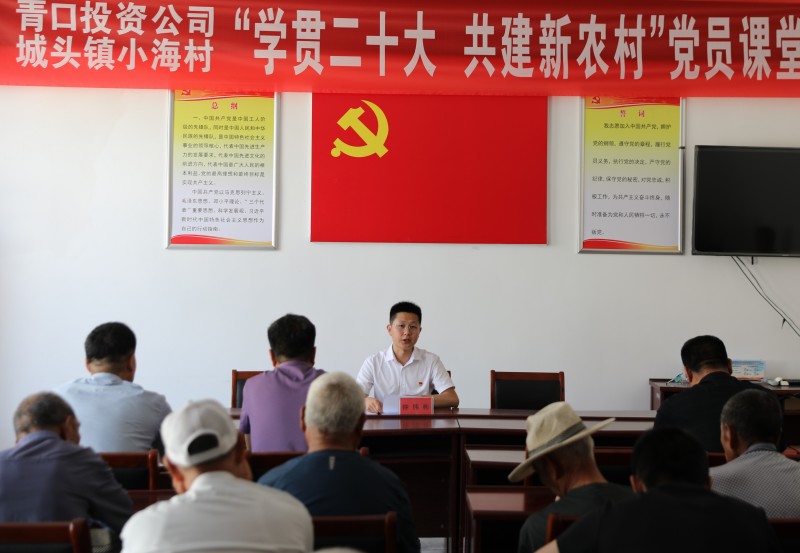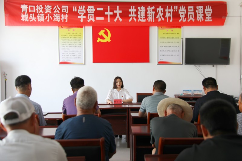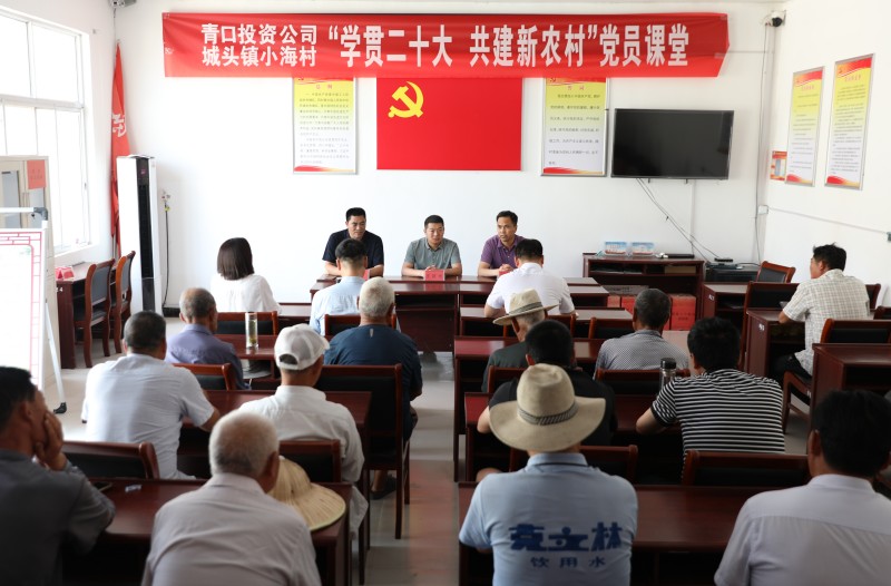為推動黨的二十大精神在鄉(xiāng)村落地生根,6月28日上午,青口投資公司、城頭鎮(zhèn)小海村聯(lián)合開展“學(xué)貫二十大 共建新農(nóng)村”黨員課堂,由公司機(jī)關(guān)優(yōu)秀黨務(wù)干部組成的二十大精神宣講隊,走進(jìn)結(jié)對共建的贛榆區(qū)城頭鎮(zhèn)小海村開展集中式、通俗化宣講。公司黨委副書記、工會主席梁永,城頭鎮(zhèn)副鎮(zhèn)長王延光,城頭鎮(zhèn)小海村支部書記徐坤參加活動。