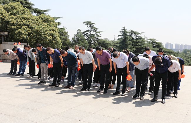 在烈士紀(jì)念塔前,公司黨委副書記梁永帶領(lǐng)全體黨員向淮海戰(zhàn)役烈士敬獻(xiàn)花籃,并三鞠躬。