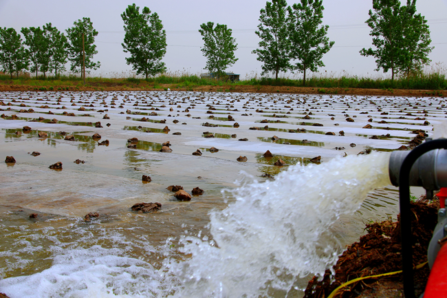 ▲塑盤育秧后進入秧苗管理期,條田管理工正引水灌溉,全力做好保苗護苗工作,為下一步序時推進插秧工作打下基礎(chǔ)。