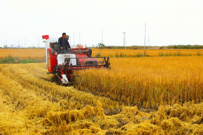 ? ?10月28日,青口投資公司的萬畝鹽堿地標準化農田里,有機水稻示范點率先開鐮收割,現(xiàn)代化收割機正開足馬力進行水稻收割作業(yè),到處一派繁忙喜悅的秋收景象。
