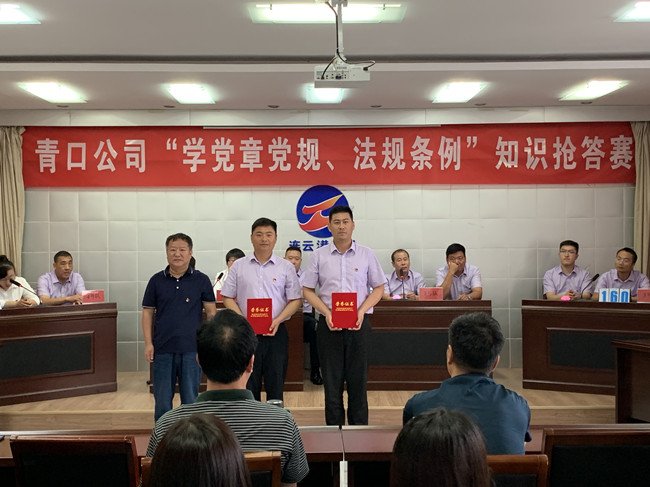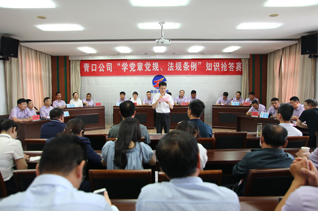 為推動黨員干部進(jìn)一步掌握基本標(biāo)準(zhǔn),增強(qiáng)黨的意識、黨員意識、紀(jì)律意識,更好地堅(jiān)守初心、踐行使命,6月23日上午,青口公司舉辦“學(xué)黨章黨規(guī)、法規(guī)條例”知識搶答賽活動。來自公司8個支部的24名選手參加了比賽。公司黨委班子成員出席了活動。機(jī)關(guān)全體管理人員、各單位黨政工負(fù)責(zé)人到場觀看。