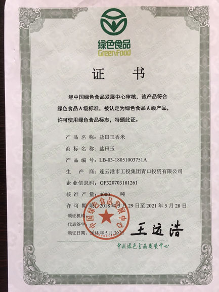 經(jīng)過 2年時(shí)間的奔波和整理材料,“鹽田玉”米于2018年5月通過認(rèn)證,獲得綠色食品標(biāo)志使用權(quán)。