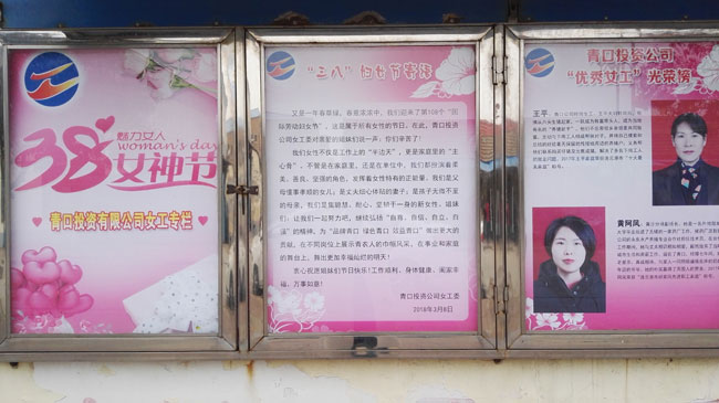 為表彰先進,樹立典型,激發(fā)女工們爭先創(chuàng)優(yōu)的意識, “三八”節(jié)前夕,青口公司女工委開展了“優(yōu)秀女工”評選活動,對評選出來的優(yōu)秀女工加大了宣傳力度,并增設“三八”節(jié)櫥窗專欄,大力宣揚公司先進女工事跡?!?/span>
