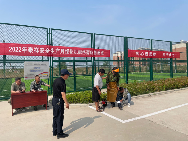 為了有效應(yīng)對突發(fā)事件的處置能力,提高員工安全防范意識。6月22日下午,在泰祥門前小廣場舉行泰祥綠化機(jī)械傷害應(yīng)急演練。