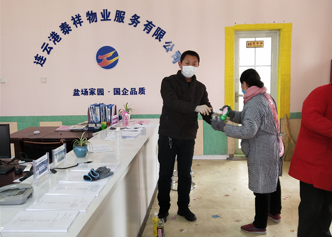 自新型冠狀病毒感染的肺炎疫情發(fā)生以來,泰祥公司所有的保潔、保安堅(jiān)守崗位,兢兢業(yè)業(yè),奮戰(zhàn)在疫情防控工作的第一線。為了確保他們的身體健康并感謝他們家人的理解,在消毒液緊缺的情況下,公司率先錯時為他們發(fā)放酒精和84消毒水,并及時告知使用酒精和84消毒水的注意事項(xiàng)。(趙萌萌)