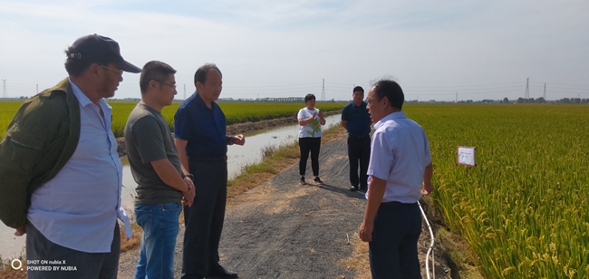 9月24日中午,江蘇省農(nóng)業(yè)科學(xué)院蘇北科技服務(wù)中心主任楊四軍研究員一行到大新農(nóng)場察看“優(yōu)香粳”水稻的生長情況,與農(nóng)場負(fù)責(zé)人及條田工就優(yōu)香粳當(dāng)前生長情況及生長后期的注意事項提出了指導(dǎo)性建議。優(yōu)香粳是由省農(nóng)科院提供的優(yōu)質(zhì)稻米品種,曾在2018年上海優(yōu)質(zhì)稻米品鑒會獲金獎。(劉 楊)