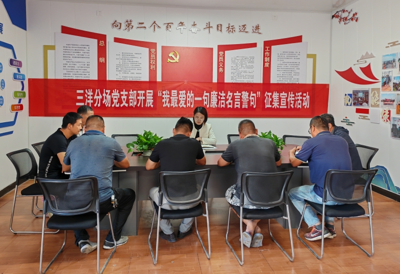 在中秋、國慶即將到來之際,為增強(qiáng)黨員干部廉潔意識(shí),營造濃厚的清廉文化氛圍,將黨風(fēng)廉政建設(shè)向縱深推進(jìn)。9月14日上午,三洋分場(chǎng)黨支部在黨員活動(dòng)室開展“我最喜愛的廉潔名言警句”征集宣傳活動(dòng)。