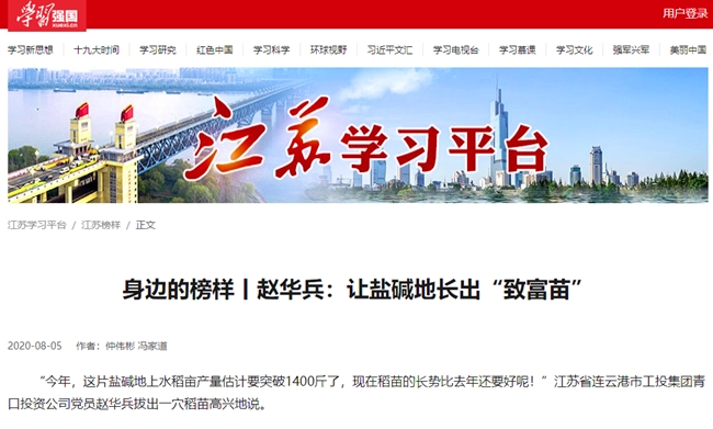 近日,我公司黨員趙華兵事跡登上“學習強國”江蘇學習平臺,黨建品牌的影響力、引領力和傳播力進一步提升。