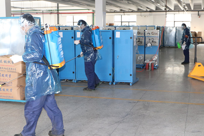 乙班班長封安帶領(lǐng)員工前往生產(chǎn)現(xiàn)場進行消殺,對發(fā)熱員工可能出入和接觸的工作現(xiàn)場、操作臺、更衣室、原輔材料、工具等進行徹底消毒。生產(chǎn)設(shè)備部王勇、王卉啟動調(diào)查程序,詢問其他員工,了解發(fā)熱員工行動軌跡和密切接觸情況。