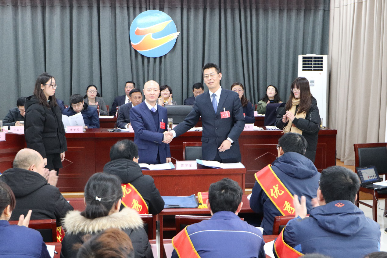 會議選舉產(chǎn)生了新一屆工會委員會、工會經(jīng)費審查委員會、女職工委員會及職代會三個專門委員會。與會人員聽取并審議了總經(jīng)理《工作報告》、工會《工作報告》及《2018年預(yù)算指標(biāo)完成情況及2019年預(yù)算安排的意見》、《2019年勞動競賽實施意見》等有關(guān)方案。會上,簽訂了《2019年度集體合同》,并對2018年度3個先進(jìn)部室、3個示范班組及15名優(yōu)秀員工進(jìn)行了表彰。