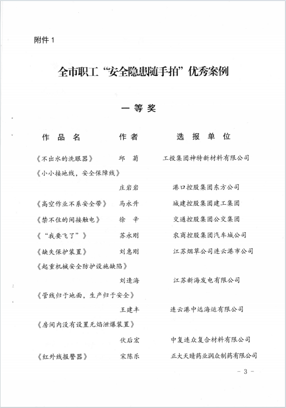 近日,市“安康杯”“安全隱患隨手拍”活動獲獎(jiǎng)作品揭曉,公司員工邱菊參賽作品《不出水的洗眼器》獲得一等獎(jiǎng),陳士亮參賽作品《無用的燃?xì)鈭?bào)警器》獲得二等獎(jiǎng)。(神特宣)