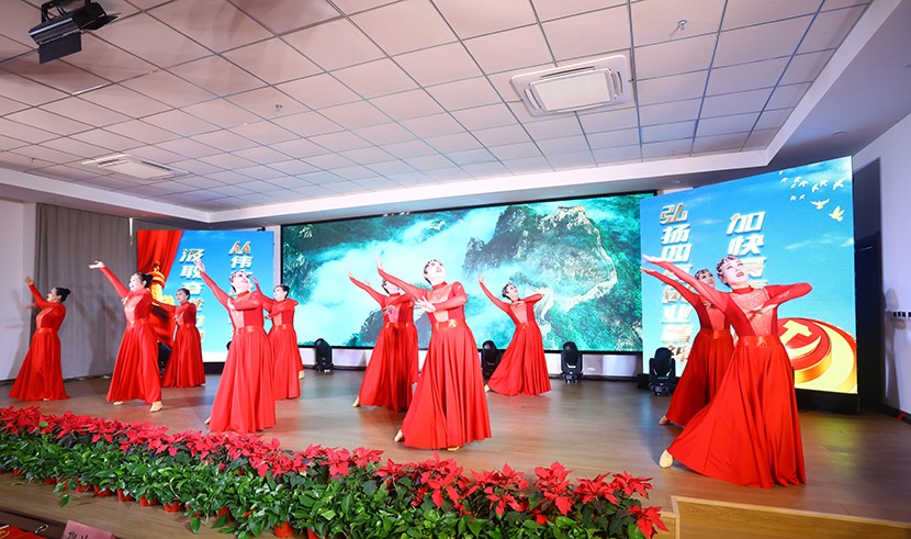 演出在舞蹈《東方紅》中拉開(kāi)序幕,隨后,一個(gè)個(gè)歡快、喜慶、祥和的文藝作品相繼上演。其中,既有“立志不定,終不濟(jì)事”情景表演《朱熹家訓(xùn)》,講述身邊星級(jí)員工的感人故事,也有大氣磅礴的男女對(duì)唱《不忘初心》和小合唱《小美滿》,展現(xiàn)公司青春活力的詩(shī)朗誦《向最美致敬》,凝聚力量,充滿活力的舞蹈《不忘初心》,展現(xiàn)員工生產(chǎn)生活和身邊故事的小品《生產(chǎn)再忙 安全不忘》《沒(méi)事找事》,《創(chuàng)新發(fā)展當(dāng)先鋒》為主題的曲藝表演三句半,體現(xiàn)職工精神風(fēng)貌和抒發(fā)愛(ài)國(guó)之情的歌頌祖國(guó)的歌曲《紅梅贊》《把最美的歌兒唱給媽媽》《領(lǐng)航》《最美的太陽(yáng)》……最后,在全體星級(jí)員工合唱的《沒(méi)有共產(chǎn)黨就沒(méi)有新中國(guó)》中落幕,高潮迭起、精彩不斷,得到廣泛好評(píng)。