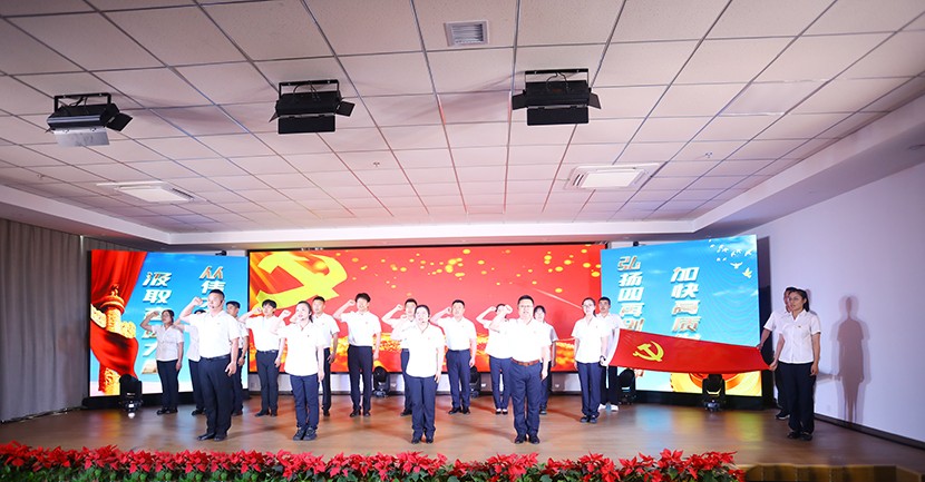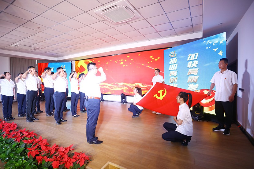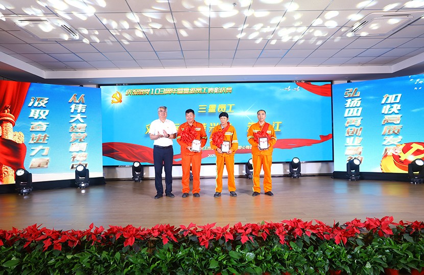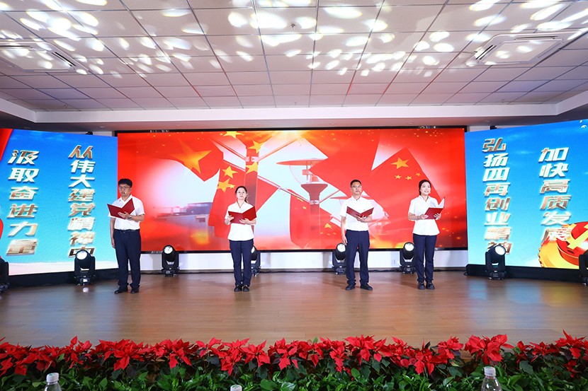 演出中,陳大壹、宋思雯、閆佳俊等十名新發(fā)展的中共預(yù)備黨員和新老黨員代表進(jìn)行了現(xiàn)場(chǎng)宣誓,并合唱《我宣誓》。對(duì)公司黨委評(píng)選出的星級(jí)員工進(jìn)行表彰,并對(duì)三星級(jí)員工進(jìn)行了專訪。