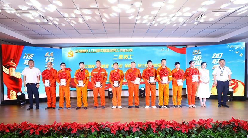 為鼓勵(lì)先進(jìn)、創(chuàng)樹(shù)典型,進(jìn)一步激發(fā)全公司廣大員工干事創(chuàng)業(yè)活力,不斷推動(dòng)“ 敢為、敢闖、敢干、敢首創(chuàng)”在全公司上下蔚然成風(fēng),助力公司高質(zhì)量跨越式發(fā)展。6月21日下午,臺(tái)北(華茂)公司“展風(fēng)采·黨旗頌·強(qiáng)發(fā)展”星級(jí)員工頒獎(jiǎng)文藝演出在環(huán)保裝備產(chǎn)業(yè)園圓滿落幕。公司領(lǐng)導(dǎo)班子,各單位、部門干部職工觀看演出,特邀請(qǐng)集團(tuán)黨建人資、工會(huì)等同志到場(chǎng)觀摩指導(dǎo)。