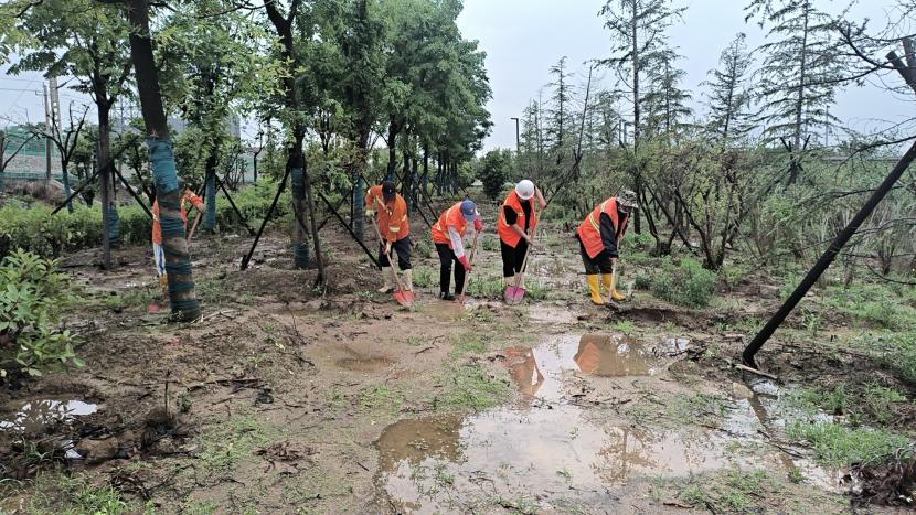 綠化分公司全力以赴筑牢汛期“安全網(wǎng)”,迅速開(kāi)展應(yīng)急處理,加大現(xiàn)場(chǎng)巡查力度,及時(shí)進(jìn)行排澇清淤、樹(shù)木扶正、強(qiáng)基加固,全力排除險(xiǎn)情,保障樹(shù)木、苗木安度汛期。截至20日17時(shí),出動(dòng)巡查人員 56人次,巡查車、高架車、貨車等車輛 24車次,扶正移栽倒伏樹(shù)木 70 株,修剪斷枝 12株,加固支撐168株。對(duì)云池路、玉竹路、匯晶路等22處路段排澇清淤,及時(shí)消除轄區(qū)內(nèi)安全隱患,保障了市民出行安全,鞏固了城市綠化成果。