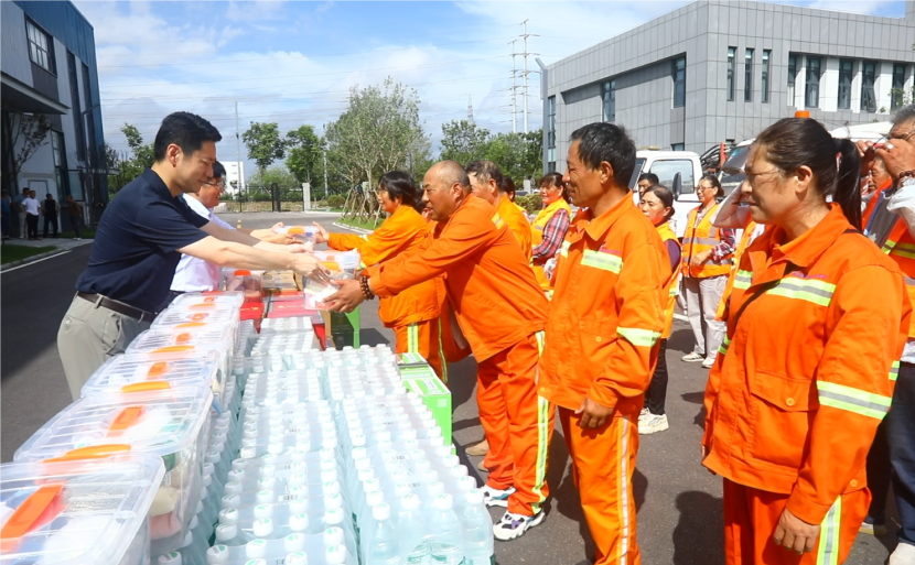 高溫下的熱情,用關(guān)愛撫慰人心。公司工會持續(xù)開展“夏送清涼保安康”活動,先后到先鋒東灘、躍湖路、東方大道、黃海大道等作業(yè)現(xiàn)場,慰問不畏高溫,不懼辛苦奮戰(zhàn)在高溫現(xiàn)場的干部職工,為在高溫天氣下堅守崗位的職工們撐起一片綠蔭。把清涼的飲用水、綠茶和綠豆湯,以及防暑降溫藥品送到職工手中,親切地囑咐職工們做好自我防護(hù),提醒大家在戶外作業(yè)的同時要注意防暑降溫,注重作業(yè)安全和身體健康。