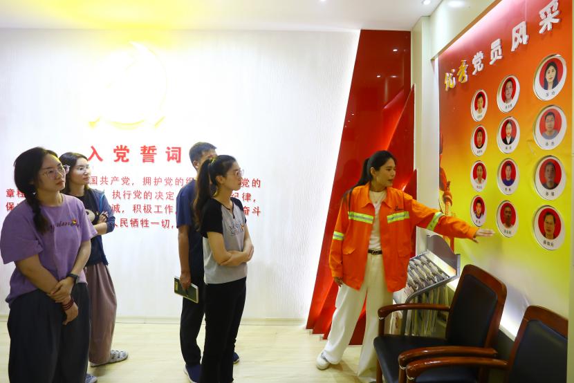 與會人員先后觀摩了環(huán)衛(wèi)、綠化分公司黨建室,環(huán)衛(wèi)分公司黃海大道班組王麗班組勞模工作室,參觀學(xué)習(xí)了綠化創(chuàng)智綠園班組三組聯(lián)建陣地建設(shè)及黨建特色工作,隨后一行觀摩了綠化分公司支委會工作例會。