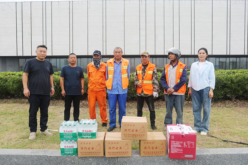 傅書記先后來到大浦路、花果山大道、工業(yè)展覽中心等施工作業(yè)現(xiàn)場,慰問假期仍堅守在工作崗位上的員工,并和他們親切交談,詢問工作進展情況,對大家的辛勤付出和奉獻表示衷心的感謝,向堅守在崗位的職工送去組織的關(guān)懷與節(jié)日的祝福。