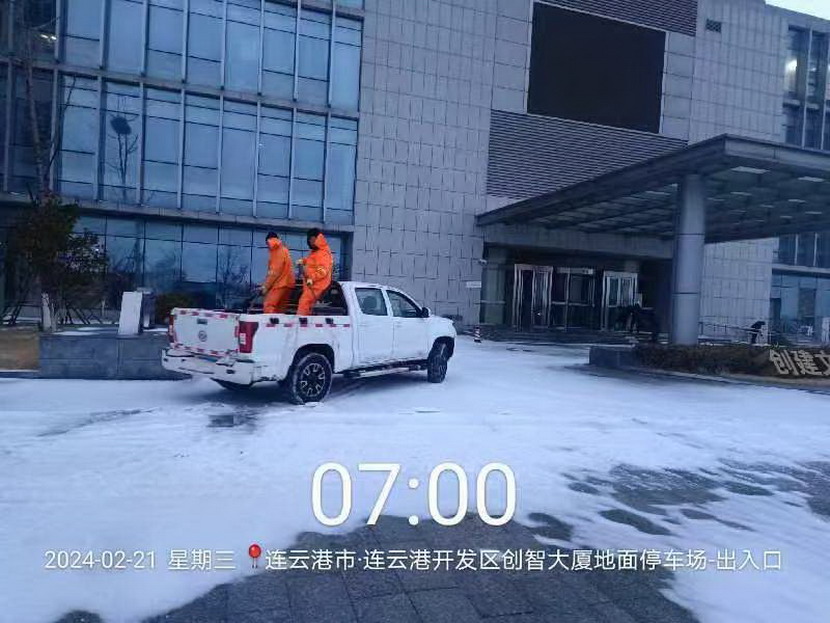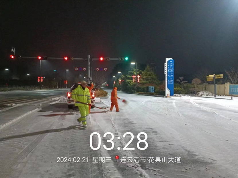? ? 2月20日晚,港城迎來了新一輪大范圍降雪,大部分地區(qū)出現(xiàn)凍雨伴冰粒天氣。為保障群眾出行安全,益豐園林分公司以雪為令,副經(jīng)理孫杰帶領(lǐng)徐明磊、樊如軍、朱文健3名黨員同志迅速反應(yīng),快速出擊,身披“橘”甲,浴“雪”奮戰(zhàn)。傍晚6點開始,從新光路涵洞區(qū)域到花果山大道東側(cè),先鋒大橋至黃海大道區(qū)域,再到東方續(xù)道至大港東路路段,4名同志不分晝夜,連續(xù)奮戰(zhàn),不間斷巡查,發(fā)現(xiàn)積雪立即鏟除,及時消除道路安全隱患,共計撒布融雪劑8余噸,積雪清理成效明顯,為周邊群眾出行開辟出一條“溫暖平安路”。