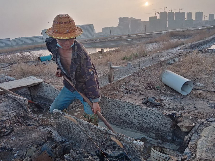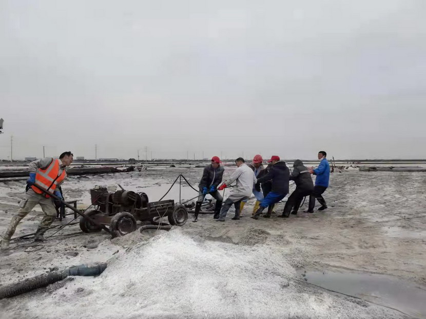 在海州灣大浦班組367畝的礦鹽生產(chǎn)灘地上,遠遠的看去,只有三個人在灘地上忙碌,分別是班長孫和華和兩名鹽工。在十月份的時候,原大浦班組班長夏軍帶領第一批鹽工前往海福特,孫和華因為身體原因選擇了留下,此時,生產(chǎn)班組人數(shù)減半,只剩下三人。新產(chǎn)業(yè)要開發(fā),礦鹽復產(chǎn)也要攻堅,當公司征求部分職工意見,誰愿意來做大浦班組的班長,維持礦鹽正常生產(chǎn)。大家心里都明白,這不是一份榮譽,而是一份責任,是千斤重擔,一片生產(chǎn)灘地只有三人,這是一個燙手山芋的活。這時,孫和華站了出來,他說:“我是一名老黨員了,黨員就是要平時看出來、困難站出來、危急豁出來,為其他同志樹立黨員先鋒模范作用,這份擔子,理應我來挑!”