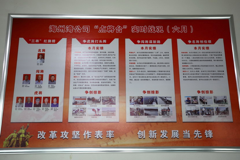 與會(huì)人員邊看邊聽(tīng)講解海州灣黨支部規(guī)范化展板和本月書(shū)記項(xiàng)目的落實(shí)情況,以及在海州灣黨建活動(dòng)室觀摩學(xué)習(xí)了上半年黨建基礎(chǔ)臺(tái)賬和活動(dòng)影像。各黨支部就基層黨組織規(guī)范化及書(shū)記項(xiàng)目“點(diǎn)將臺(tái)”的落實(shí)情況作了匯報(bào)交流。黨委副書(shū)記楊善革針對(duì)各支部的黨建工作情況作了詳細(xì)的點(diǎn)評(píng),指出各支部黨建工作中存在的不足,并要求各支部立即整改。
