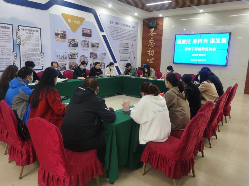 在第103個(gè)“五四”青年節(jié)來(lái)臨之際,4月28日,公司團(tuán)委聯(lián)合紀(jì)委組織召開“倡廉潔、勇?lián)?dāng)、謀發(fā)展”青年員工廉政座談會(huì)。面對(duì)企業(yè)發(fā)展的巨大壓力,需要青年員工在工作中發(fā)揮“生力軍”作用,勇?lián)厝危瑸槠髽I(yè)發(fā)展護(hù)航亮劍,同時(shí)青年職工也要筑牢拒腐防變的思想防線,扣好廉潔做事的“第一粒扣子”。