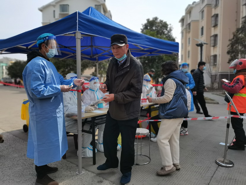 夜里9點(diǎn)40分,昌圩臨時(shí)黨支部抗疫工作群里信息不斷:“同志們,剛接社區(qū)緊急通知,明天要進(jìn)行第五輪核酸檢測,還沒有睡的同志們請(qǐng)到社區(qū)緊急集合,又增加兩個(gè)檢測點(diǎn),抓緊去建點(diǎn)擺臺(tái)?!? “霍正鋼收到、蘇玲收到、秦黎明收到、朱文健收到、邱榮濱收到、于洪亮收到……”,“好,晚上溫度比較低,請(qǐng)大家穿暖和一點(diǎn),10點(diǎn)社區(qū)準(zhǔn)時(shí)集合?!辈着R時(shí)黨支部書記李明發(fā)完最后一條信息,穿好馬甲,戴上口罩,出發(fā)下樓。