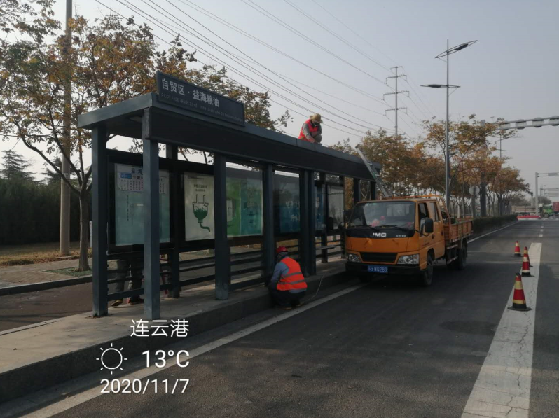 鏡頭一:7號清晨,享有翔立“鐵軍”扛把子稱譽的機械班已經(jīng)熱火朝天的投入到黃海大道公交站臺除銹噴漆翻新維護施工中,據(jù)悉,該項工程共有12座公交站臺需要維護噴漆翻新,工程造價12萬元。