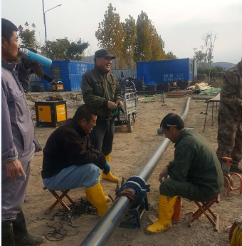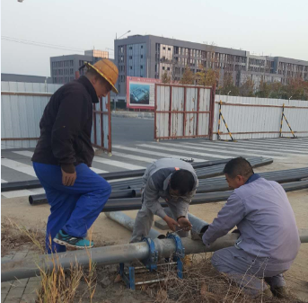 鏡頭二:負責(zé)匯晶路新建橋梁鈣液管道遷建工程的供鹵組聯(lián)合復(fù)曬灘人員早早投入到施工操作中,該項工程是為了配合開發(fā)區(qū)匯晶路與躍湖路新建連通橋梁的需要,需要遷改鈣液管道160米,工程造價6萬元。