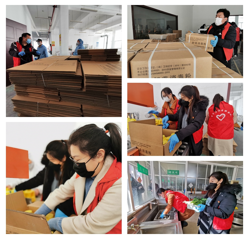 “感謝,我們收到武漢的復(fù)工邀請后,在園區(qū)的協(xié)調(diào)幫助下雖然順利復(fù)工,但是用工難的問題一直困擾著我們”“現(xiàn)在有一批消毒粉要緊急生產(chǎn)并運往疫區(qū),你們的到來真是解了燃眉之急”在美多利科創(chuàng)園入園企業(yè)永榮生物生產(chǎn)車間里,來了一批特殊的“客人”。在得知該企業(yè)有一批緊急運往武漢的消毒粉訂單,公司青年突擊隊第一時間奔赴現(xiàn)場助力生產(chǎn)運輸。車間內(nèi),“吹塑、貼標、裝箱、打包”,車間外,“發(fā)放、裝車、運輸”,分工合作,保證效率,臺北青年用青春力量踐行著“奉獻、友愛、互助、進步”志愿服務(wù)精神;在解決了園區(qū)企業(yè)的“用工難”,青年志愿者著力解決企業(yè)“吃飯難”問題。據(jù)了解,美多利科創(chuàng)園復(fù)工率已達70%,這么多人的吃飯問題也困擾著園區(qū)?!皳觳?、洗菜、分盒”青年突出隊中的“半邊天”發(fā)揮自己特長,小小幫助迎來了園區(qū)大廚的“大拇指”。