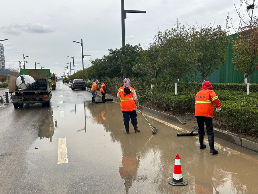 本次路線保障是今年以來最大規(guī)模任務(wù),遵循“每個(gè)重要現(xiàn)場(chǎng)必有安全員,必有班組長,必有機(jī)械設(shè)備”的要求,8個(gè)保潔班組,1個(gè)垃圾清運(yùn)班組,1個(gè)清掃車隊(duì),1輛鏟車,一層管理人員共160名職工全部出動(dòng)。長達(dá)3天的路線保障中,清理落葉3.7噸,車輛行駛里程超1500公里,覆蓋防塵網(wǎng)近3000平方米,期間在開發(fā)區(qū)多次的突擊檢查中都能受到高度贊賞,為大合同簽訂再贏口碑。
