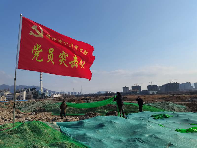 1月20日,在臨達(dá)公司330畝貨場(chǎng)的一處“山丘”上,一面鮮紅的海州灣黨支部“黨員突擊隊(duì)”旗格外引人注目。當(dāng)天中午12時(shí),聽(tīng)聞兄弟單位臨達(dá)公司急需人手苫蓋防塵網(wǎng),支部書記劉天義一聲令下,海州灣“黨員突擊隊(duì)”立即集結(jié),穿戴好勞動(dòng)裝備,奔赴環(huán)境整治“主戰(zhàn)場(chǎng)”。