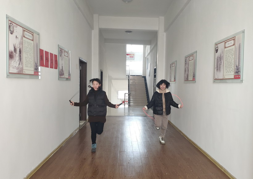 跳繩比賽兩人一組,用最短的時(shí)間跳到終點(diǎn)者勝利。只見他們用一次次律動(dòng)的跳躍動(dòng)作,挑戰(zhàn)著自己的力量和耐力,盡情“繩”采飛揚(yáng),跳出精彩。