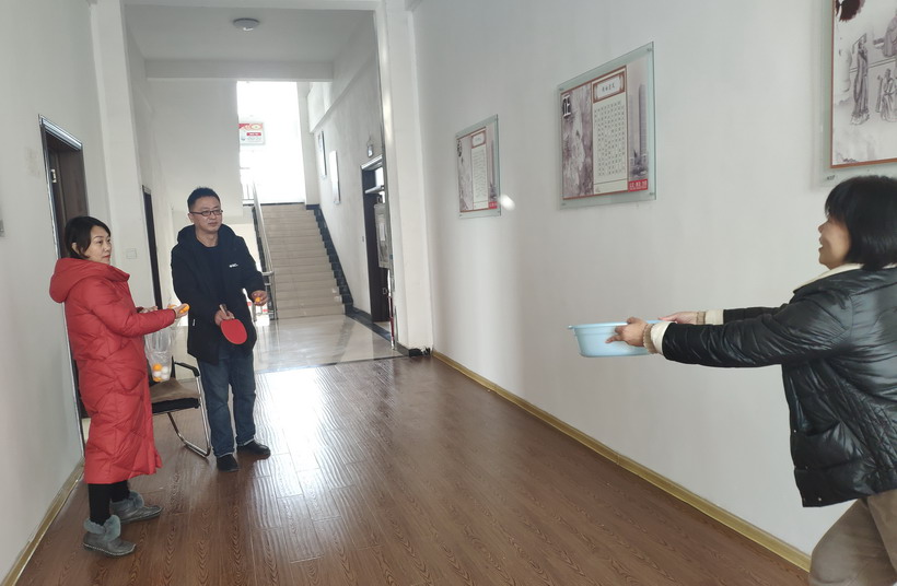 組隊(duì)乒乓更是考驗(yàn)著隊(duì)員之間的默契與配合,一人用拍揮球,一人用盆接球,真是“乒”出了活力、賽出了喜悅。