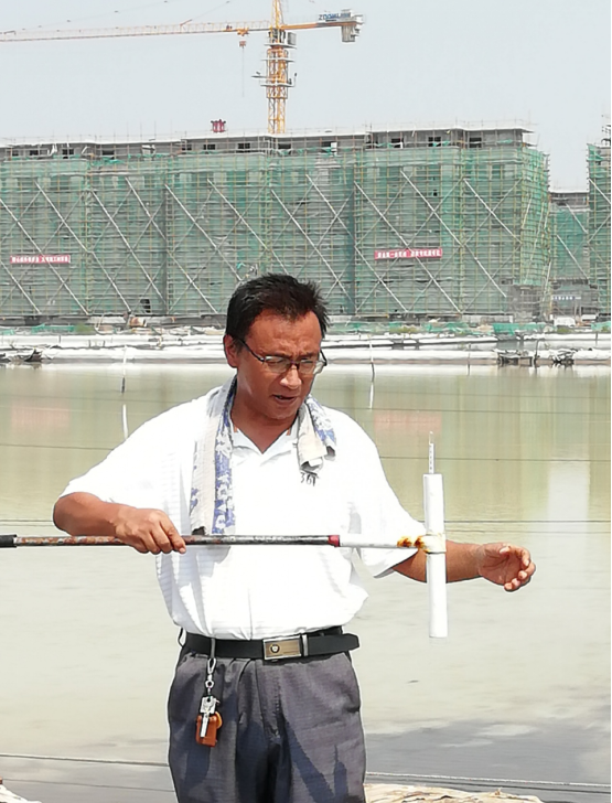 復曬灘的日常維修工作中他能夠主動做到節(jié)約工程成本,利用一切可以再利用的物資,起到降本增效的效果。遇到難題主動獻言獻策,在今年8月份他建議把黃海制鈣鹵塘大約10000方左右鈣液引進到我們復曬儲備池,緩解了鈣液緊張的狀況。