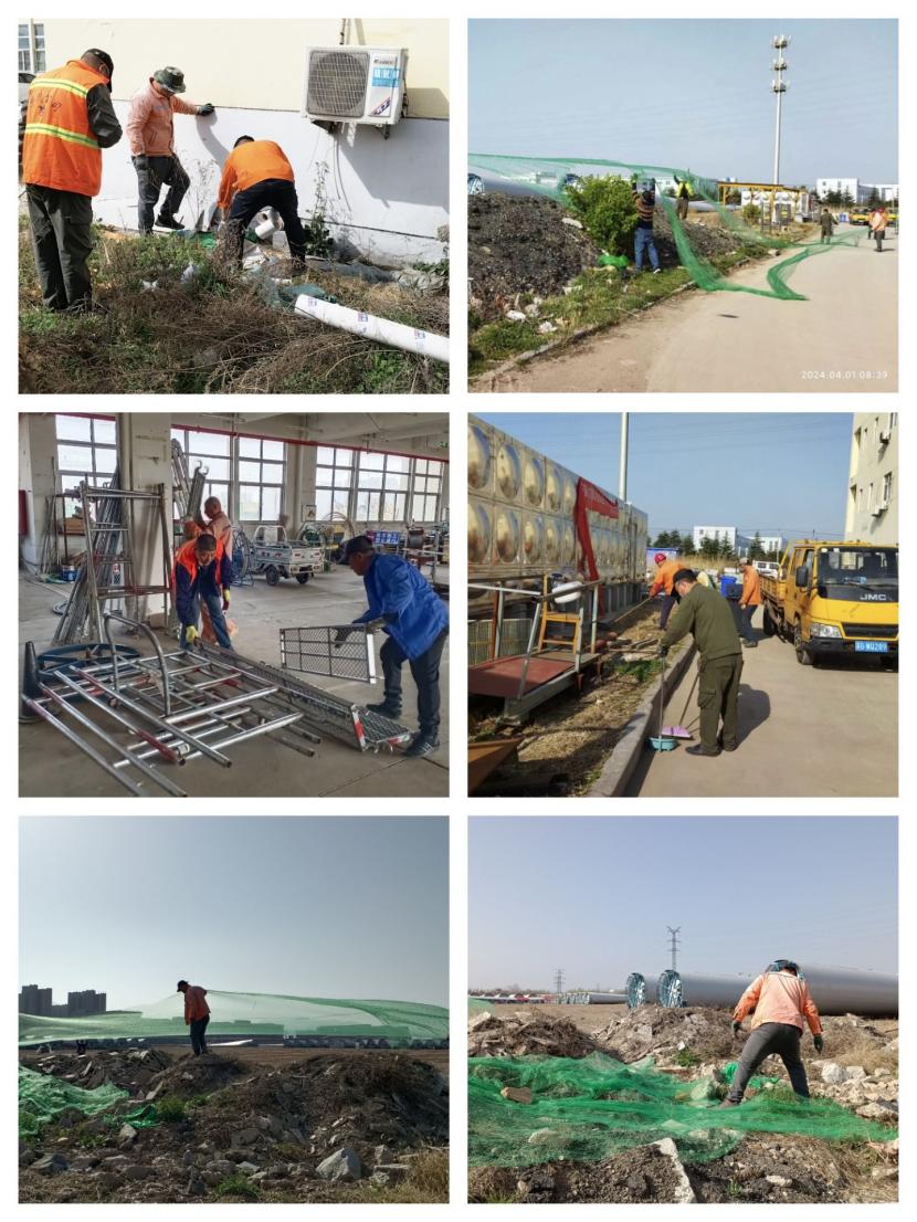 4月1日上午,該分公司各班組職工對(duì)室外露天的沙堆和石子用防塵網(wǎng)進(jìn)行認(rèn)真的覆蓋,有效的防止了揚(yáng)沙揚(yáng)塵對(duì)環(huán)境的污染影響。在車間里,職工們將散亂在各處的角手架等物品整齊的擺放在了指定區(qū)域,然后用水龍頭對(duì)地面進(jìn)行認(rèn)真的清洗,保證車間內(nèi)一塵不染的視覺效果,本次活動(dòng)的開展,明顯提升了車間和周邊環(huán)境的衛(wèi)生條件,增強(qiáng)了公司的環(huán)保形象,為大干二季度營造了良好的工作環(huán)境。