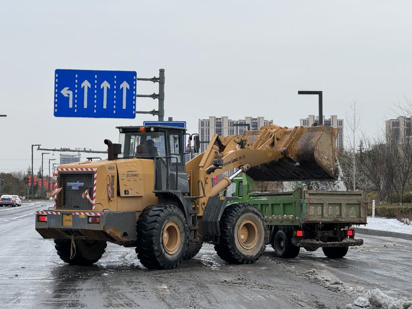 本次掃雪除冰共配備了3輛清掃車、2輛鏟車、1輛撒布機以及20余噸融雪劑,20余把推雪鏟、鐵鍬等清雪工具,采取“邊下邊除、邊除邊清、邊清邊運”的方式,根據(jù)道路積雪厚度和結冰情況,通過撒布融雪劑、除雪鏟推雪、人工配合等多措并舉,有效清理區(qū)內主干道積雪,做到“即下即掃、雪停路清”,保障群眾出行安全。此外,針對紅綠燈路口、馬路轉彎處、陡坡、橋面以及非機動車道等重要節(jié)點,環(huán)衛(wèi)分公司又出動了100余名工作人員點對點人工撒布融雪劑,共保障面積300余萬平方米。