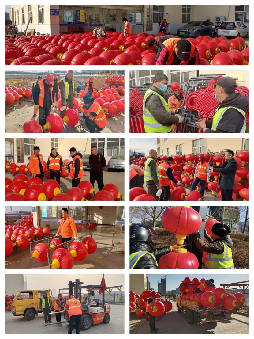突出一個(gè)“聚”字,與以往不同的是,這次燈籠安裝工作也得到了兄弟單位的大力支持,益豐、盛達(dá)、資源、悅升公司在自身也有工程人手緊張的情況下先后派遣了12人次的電工、安全員、運(yùn)輸車輛駕駛員等精兵強(qiáng)將支援本次燈籠懸掛精品工程突擊工作。人多力量大,白天安裝工程結(jié)束后,每天晚上公司組織專人對已安裝好燈籠的每條路段進(jìn)行夜間巡查,對不亮的燈籠做好標(biāo)記,白天進(jìn)行修理,保障安裝的燈籠中國結(jié)百分之百的亮化率。