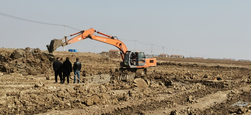 ▲3月23日養(yǎng)殖戶對養(yǎng)殖池塘機(jī)械施工