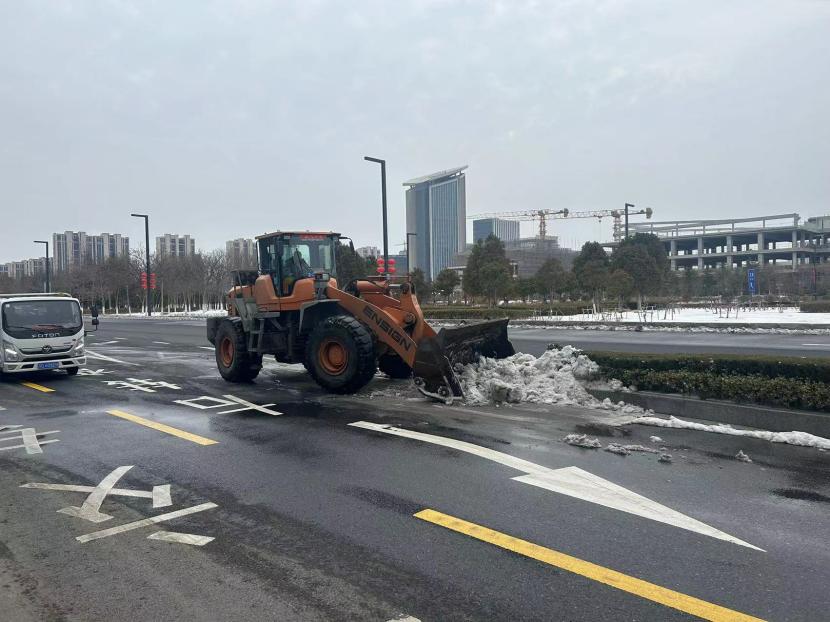 ? ? 一方有難,八方支援。由于本次降雪量大、勢(shì)急、持久,單靠環(huán)衛(wèi)分公司無(wú)法全面完成任務(wù),在上級(jí)領(lǐng)導(dǎo)的統(tǒng)籌考慮下,兄弟單位火速馳援,大綠化、大市政、大采購(gòu),大的不僅是業(yè)務(wù)整合,更是人心凝聚,更是集思廣益。翔立、盛達(dá)利用鈣液和工程資源優(yōu)勢(shì),通過(guò)架設(shè)大型原料桶儲(chǔ)備鈣液水,由3-5輛工具車(chē)進(jìn)行24小時(shí)鈣液拋灑,積冰融化速度超出預(yù)期,提升了后期鏟車(chē)的工作效率,順利保證了上下班高峰期交通順暢。特別是在2月22日,在兄弟單位的協(xié)助下在清晨8點(diǎn)完成了活動(dòng)路線保障及市領(lǐng)導(dǎo)掃雪除冰視察。