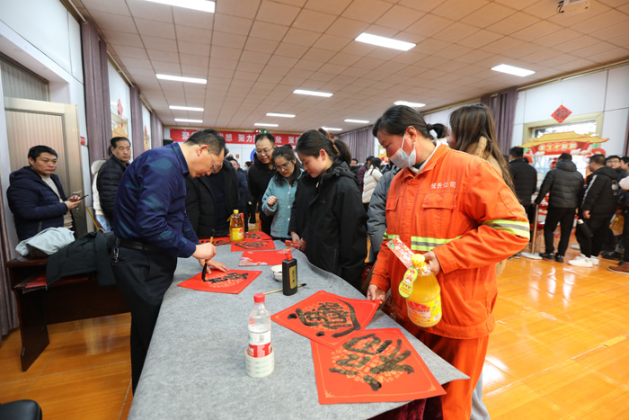 現(xiàn)場開展的寫“?!彼汀案!被顒?,與項目比賽同頻共振,在喜慶的音樂聲中把一張張紙紅墨香的“?!弊炙蛡€每一名職工,為營造喜樂福滿的“新春賽場”增色添彩,增強職工的成就感和幸福感。(徐宣 徐工)