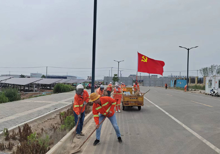 6月21日,該黨支部近30余名黨員在支部的感召下,匯集于新區(qū)節(jié)能一路道路兩邊。勞動現場,黨員生產骨干姚功身先士卒,無懼泥土粉塵揚起,揮汗清理,不怕臟、不怕累,不放過任何衛(wèi)生死角。勞模張學軍與老黨員徐習東相互配合,打包,裝車, 及時轉運各類垃圾達50多袋,清掃路面積土近1500米長,大家分工明確,重活臟活搶著干。隊員們齊心協力,用實際行動詮釋黨員吃苦在前、勇于擔當的奉獻精神。經過四個多小時清理,主干道及周邊道路垃圾、雜草、泥土全部清理干凈,高質量完成奉獻勞動,鮮艷的黨旗在陽光的照耀下顯得格外閃亮。(楊波)