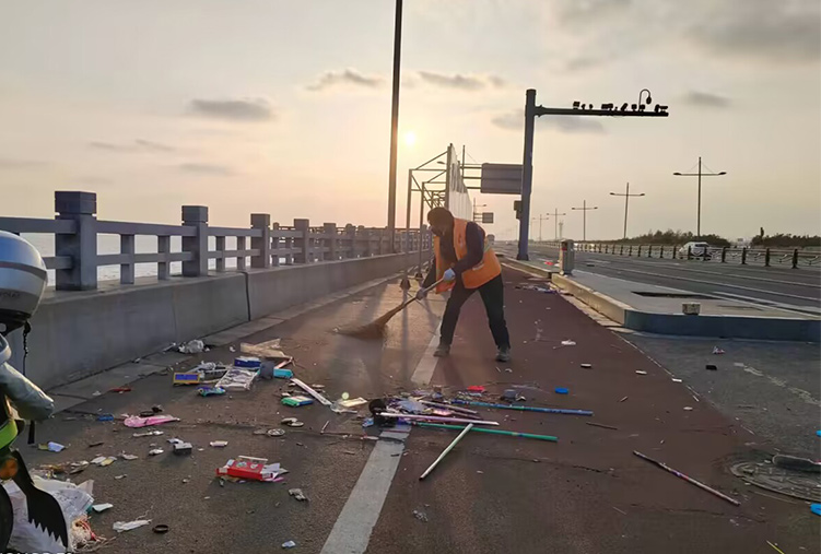 “六位一體”,加強機械作業(yè)力度。保潔分公司全面落實精細(xì)化管理工作制度,加大機械化清掃作業(yè)力度,每天持續(xù)出動18臺大清掃車、2臺高壓沖洗車?yán)W(wǎng)式上路作業(yè)。加強責(zé)任區(qū)域巡回檢查力度,清掃打包各類煙花垃圾50多包、泥土30多處,轉(zhuǎn)運各類垃圾100多車;清洗護(hù)欄長30多公里、站臺30個,以更高標(biāo)準(zhǔn)、更嚴(yán)要求推進(jìn)節(jié)日期間保潔工作。