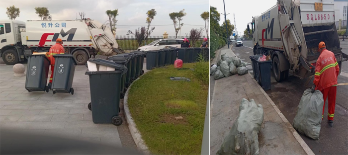 節(jié)日期間,環(huán)衛(wèi)分公司每天出2輛清運車輛,隨車4名環(huán)衛(wèi)推桶工人、2名駕駛員,對徐圩新區(qū)住宅小區(qū)、企業(yè)(單位)及公共地段60個垃圾收集點的440個垃圾分類桶、200個果皮箱及400個垃圾包進(jìn)行清收。每日清收垃圾約20余噸,并及時將垃圾轉(zhuǎn)運到垃圾中轉(zhuǎn)站。