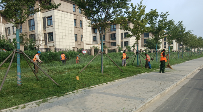 炎炎夏日,仍然阻擋不了綠化先鋒傾情奉獻的熱情。早晨6點,大家就開始一天的工作了。修剪過程中采用人工、機械相結(jié)合的方式,對面積相對較大、地面相對平整且障礙少的草坪綠地,采用手推式草坪機進行修剪;對障礙物較多的綠化采用人工拔草的方式。驕陽似火,綠化衛(wèi)士們干的熱火朝天,身上的衣服干了濕、濕了干,累了就席地而坐,休息一會,然后繼續(xù)工作。經(jīng)過兩天的持續(xù)奮戰(zhàn),共清理雜草5萬平方米,出色的完成了此次雜草清理任務(wù)。他們用不辭辛苦、愛崗敬業(yè)的態(tài)度換來了新區(qū)優(yōu)美的環(huán)境,也換來了不息的蓬勃朝氣。(陳小東)